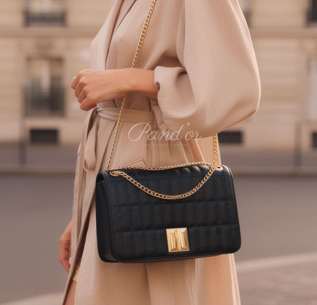 Sac matelassé à chaîne élégante, sublimé par un fermoir métallique raffiné. Sa structure compacte et son fini texturé en font une pièce sophistiquée, idéale pour rehausser n’importe quelle tenue avec une touche de classe. Parfait pour le quotidien comme pour les sorties habillées.