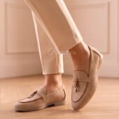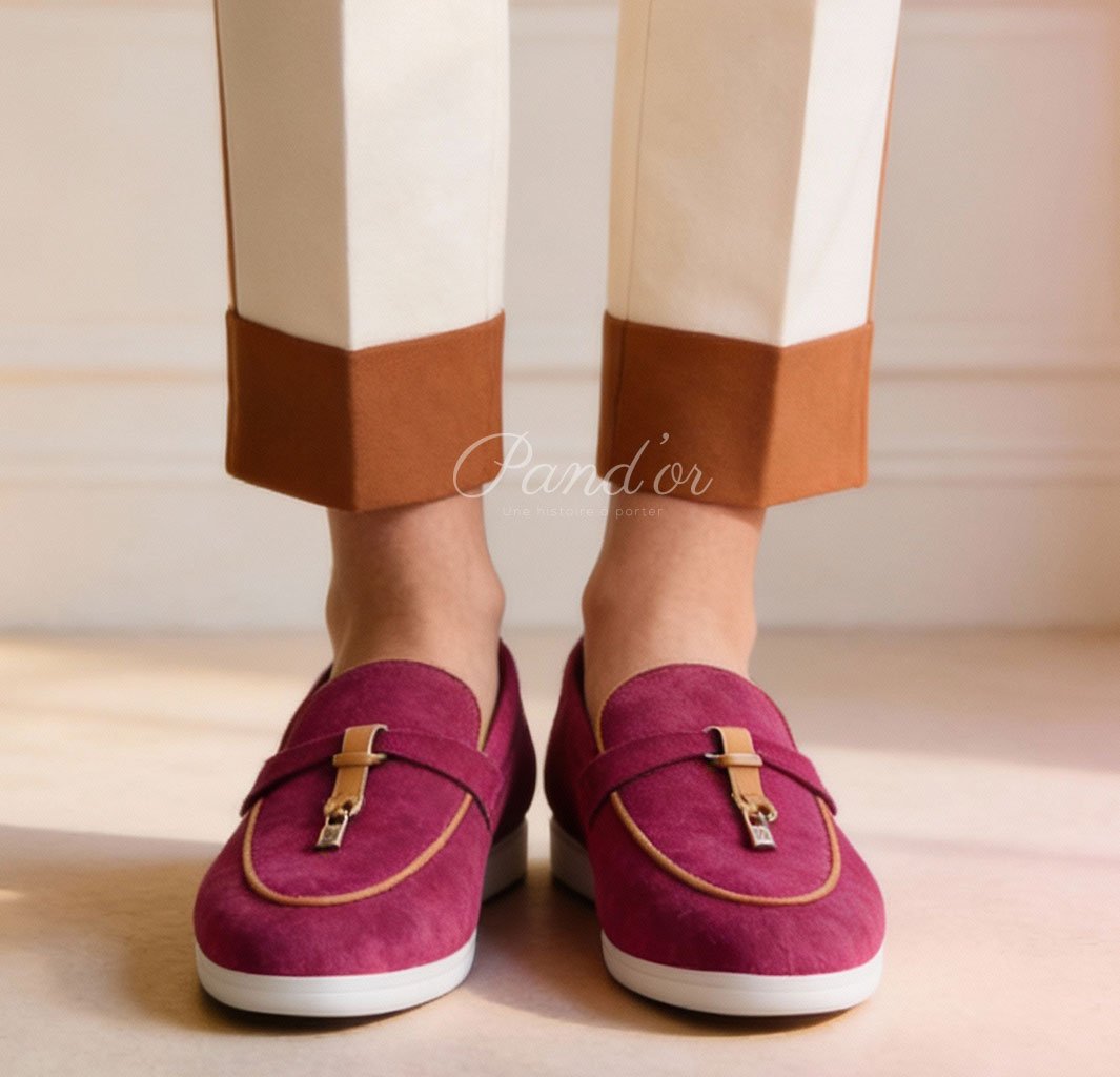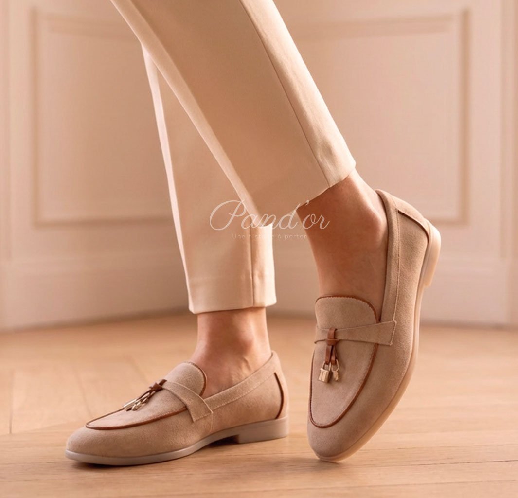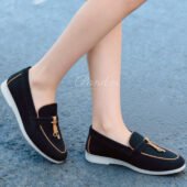 Mocassins noirs au design chic et épuré, soulignés de détails camel raffinés et d’une semelle claire, offrant une allure moderne, élégante et confortable pour le quotidien.