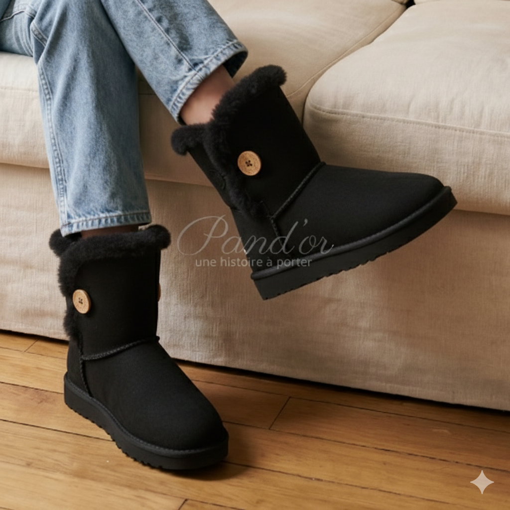 Look casual posé sur un canapé, atmosphère calme et cosy accentuant la douceur des matières.