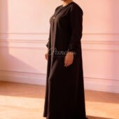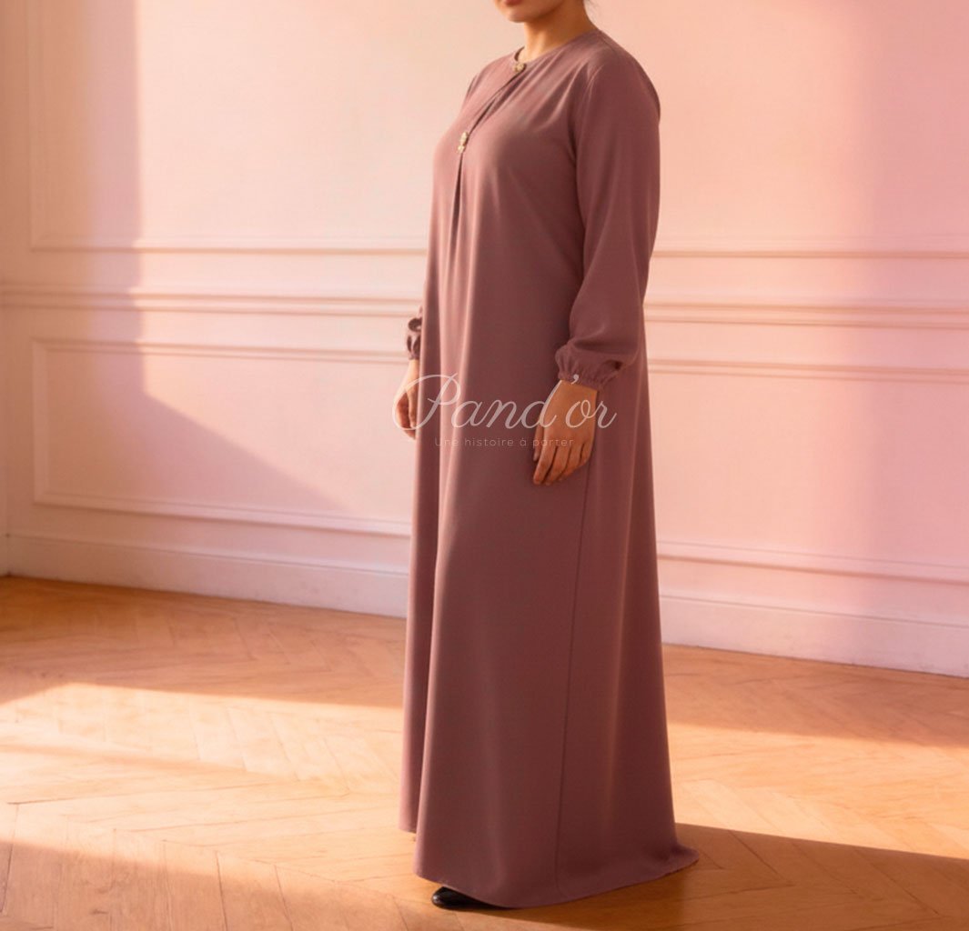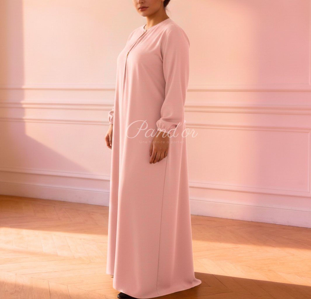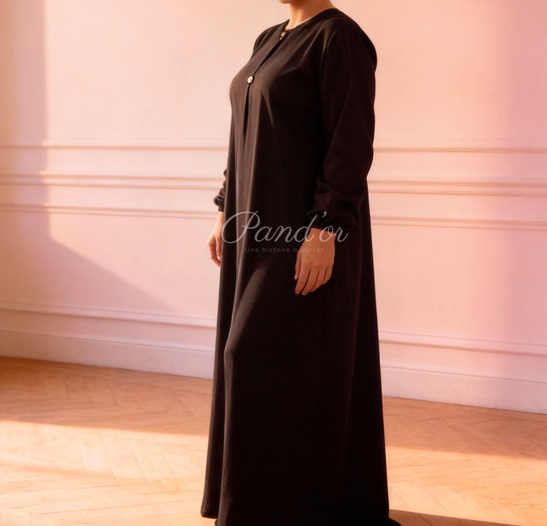 Robe longue au design sobre et raffiné, dotée d’une coupe fluide qui accompagne naturellement les mouvements, avec des manches longues et une ligne épurée mettant en valeur la silhouette, parfaite pour un style chic, discret et polyvalent, aussi bien en journée qu’en tenue plus habillée.