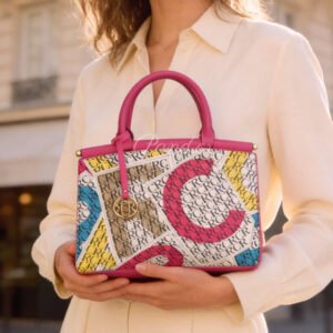 Sac structuré bicolore en bleu profond et crème, doté d’une poignée élégante et d’une fermeture raffinée. Format pratique pour le quotidien, avec une silhouette chic et moderne. Un accessoire intemporel qui apporte une touche parisienne à toutes vos tenues.