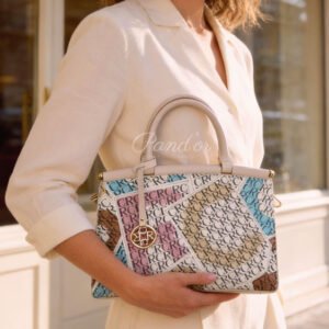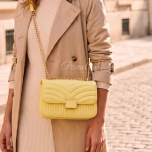 Sac structuré bicolore en bleu profond et crème, doté d’une poignée élégante et d’une fermeture raffinée. Format pratique pour le quotidien, avec une silhouette chic et moderne. Un accessoire intemporel qui apporte une touche parisienne à toutes vos tenues.