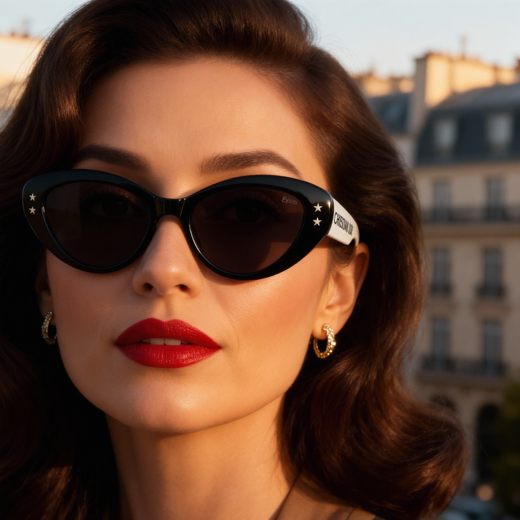 La lumière enveloppante met en relief le visage et les lunettes, offrant un rendu naturel et haut de gamme.